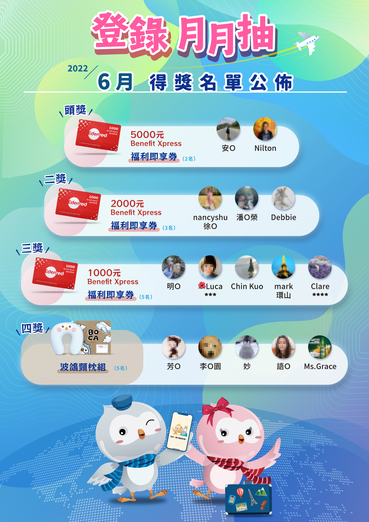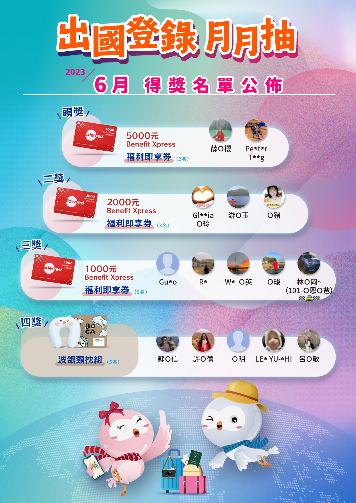 外交部領事事務局「出國登錄月月抽」抽獎活動112年6月得獎名單