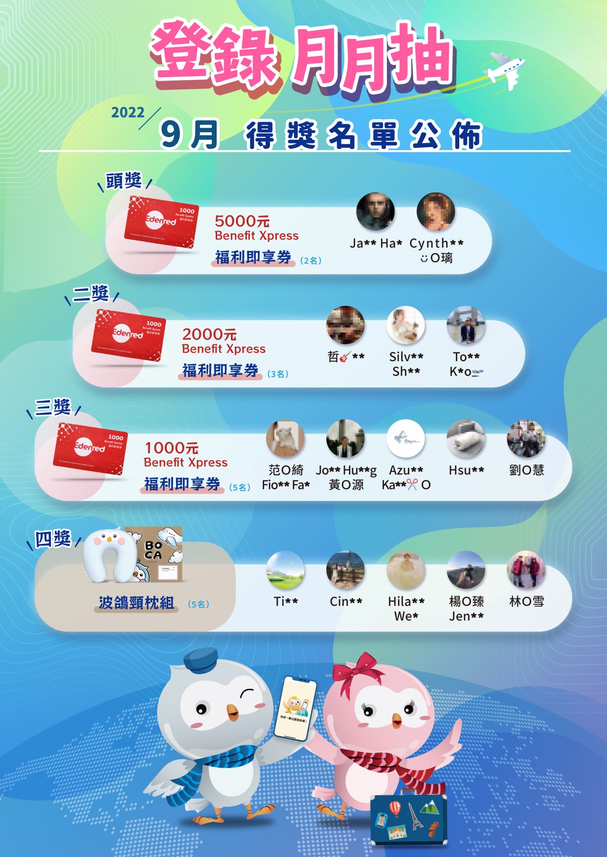外交部領事事務局「出國登錄月月抽」抽獎活動112年9月得獎名單