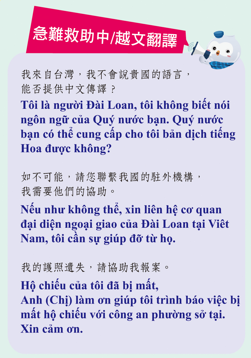 急難救助中越文翻譯卡